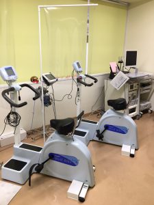 また、適切な運動量を決めるための心肺運動負荷試験も随時行います(コロナウイルス感染症問題でしばらく検査を休んでおりましたが、今後は適切な感染拡大予防策を行い施行する予定です)。